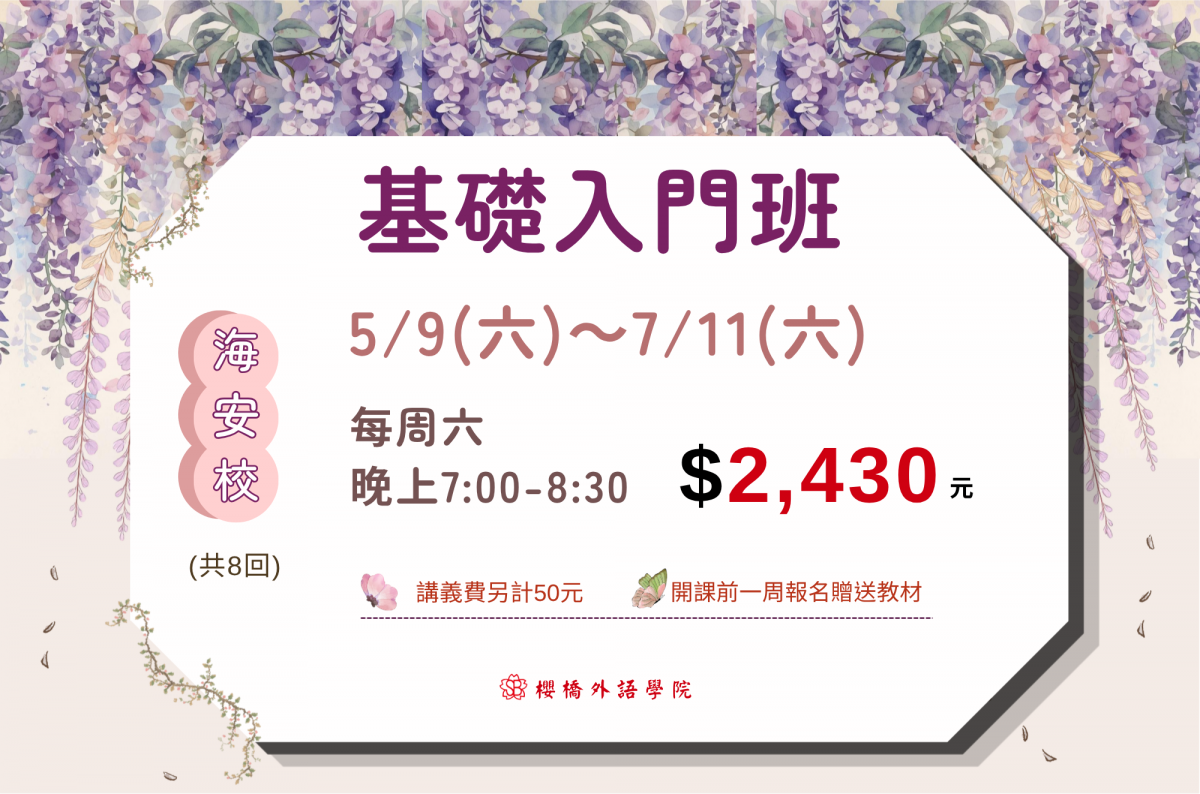 櫻橋5月基礎入門,開班囉!