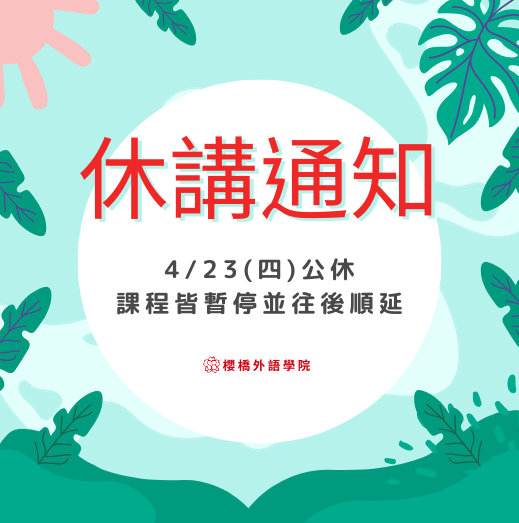 櫻橋外語學院→4/23(四)櫻橋公休哦~