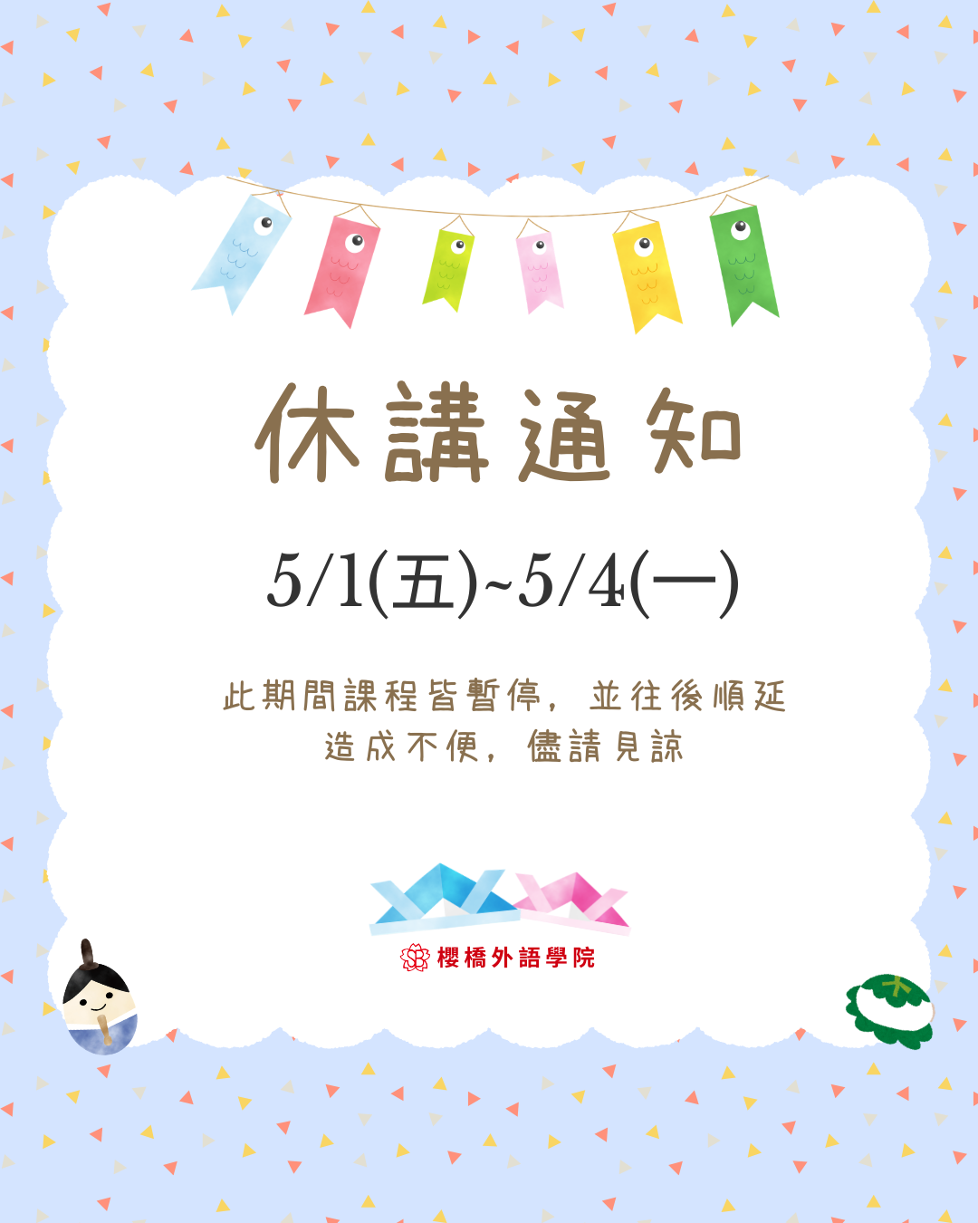 櫻橋外語學院→5/1(五)~5/4(一)櫻橋公休哦~