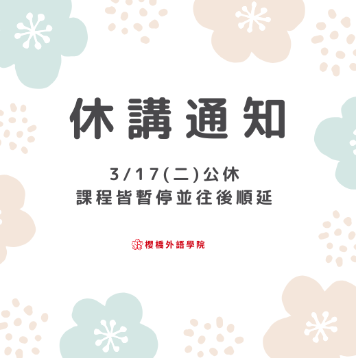 櫻橋外語學院3/17公休一天
