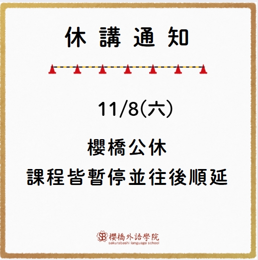 櫻橋外語學院→11/8(六)櫻橋公休哦~