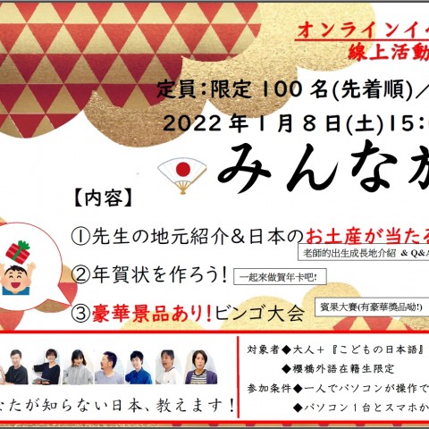 今年因為疫情的關係無法到日本遊玩,所以櫻橋外語透過此線上活動請每位日籍老師,向大家介紹自己的出生地和私房景點、做賀年卡...等,來一趟日本之旅! 【みんな旅人】出發囉!