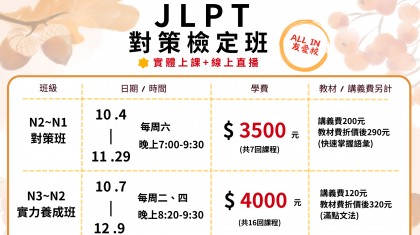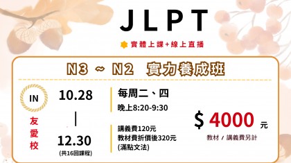 【JLPT N3~N2實力養成班】>>招生中